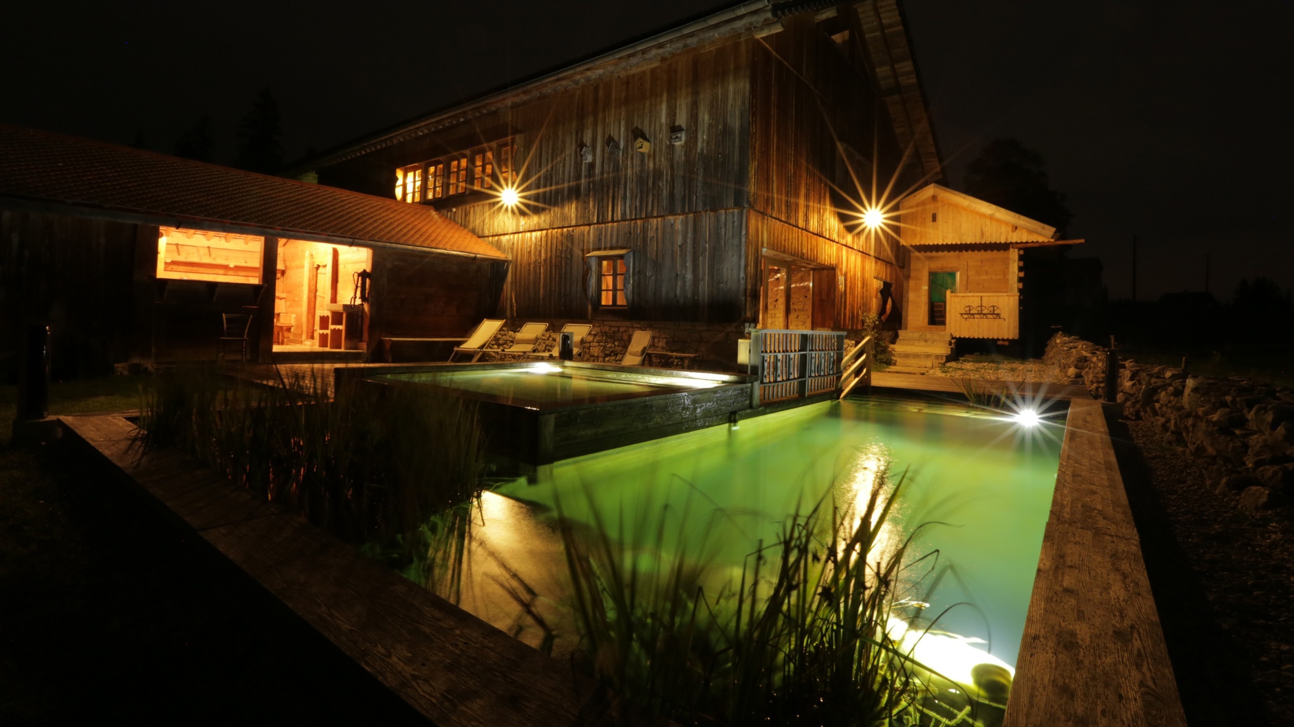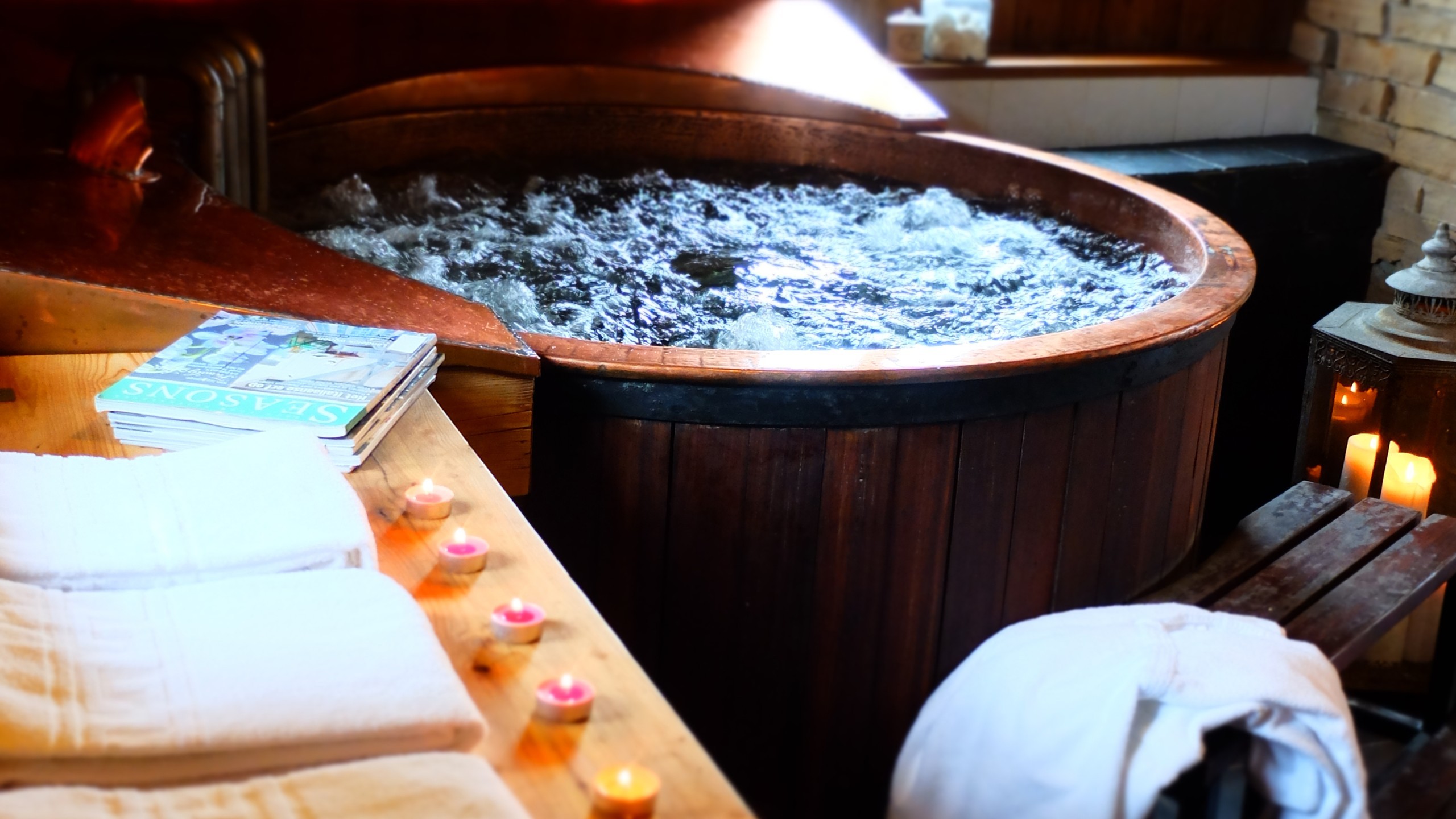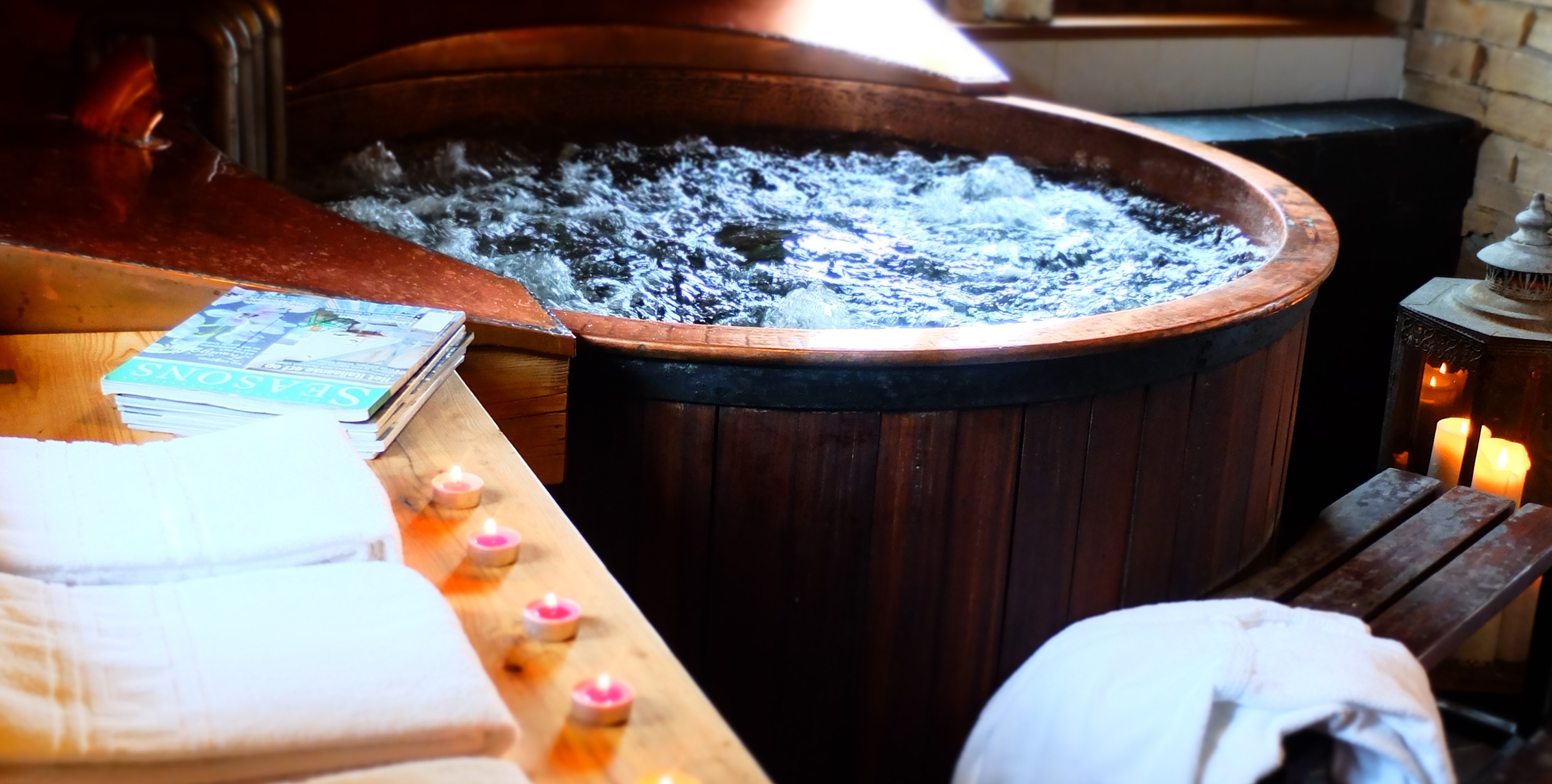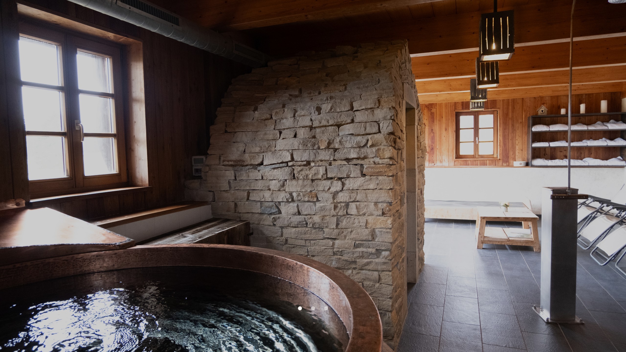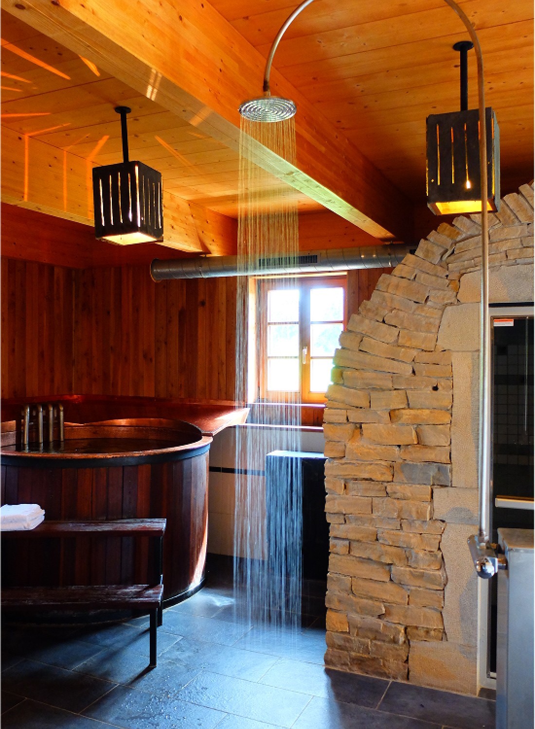 Cet espace boisé et ouvert sur la nature environnante est équipé d’un jacuzzi, d’un sauna, d’un hammam et d’une piscine extérieure.