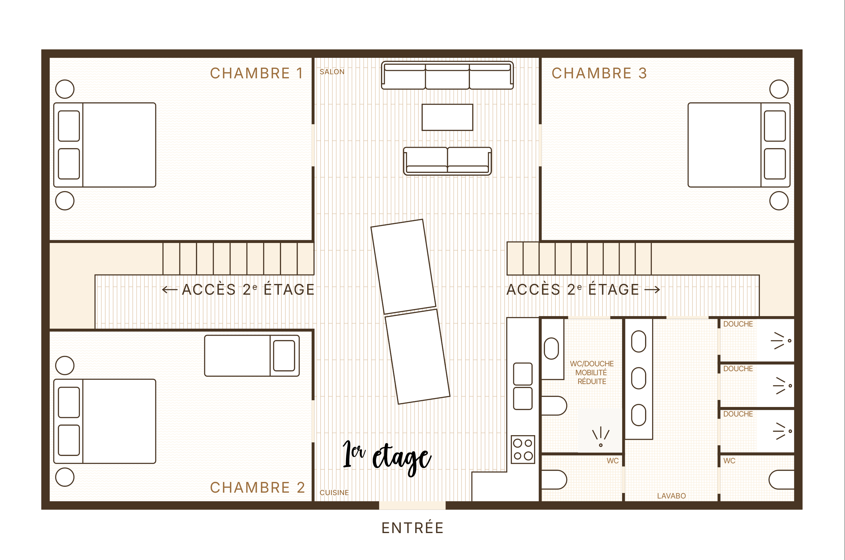 Des sanitaires au rez-de-chaussée pour l’ensemble du gîte